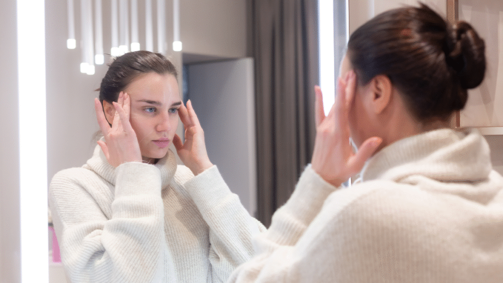Além dos benefícios estéticos, a massagem facial também é uma forma de aliviar o estresse e a tensão acumulada no rosto, especialmente na região da testa, ao redor dos olhos e mandíbula.