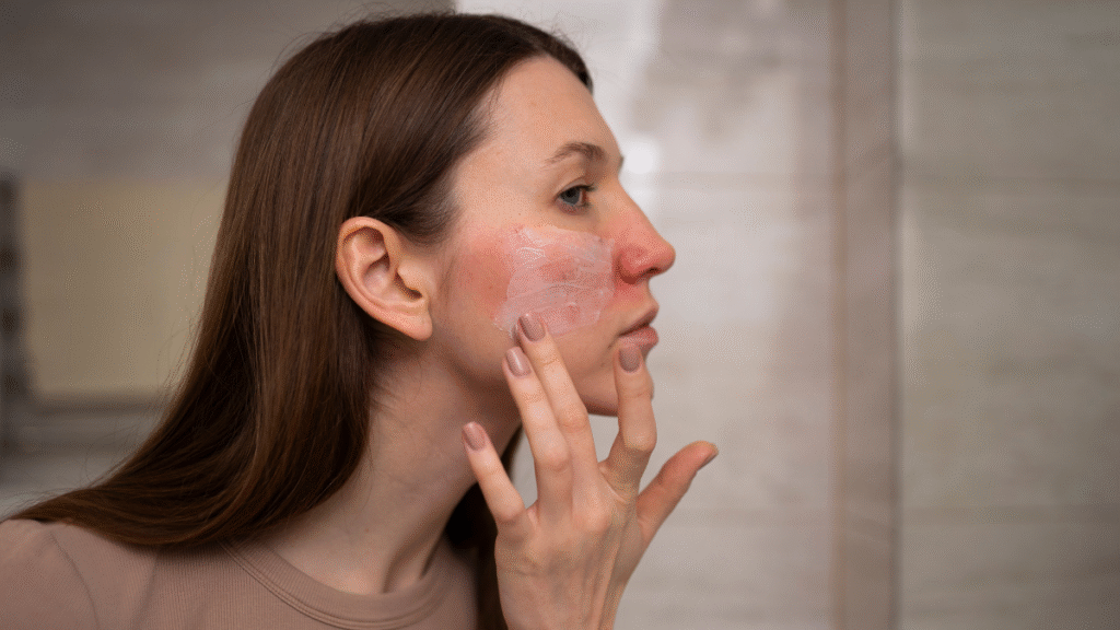 Aplique no Rosto: Com as mãos limpas, aplique o produto escolhido em seu rosto, fazendo movimentos suaves.